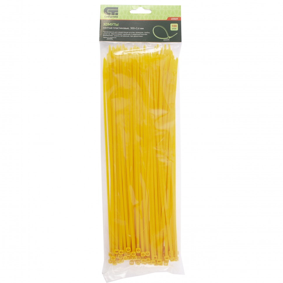 Хомуты, 300 х 3,6 мм, пластиковые, желтые, 100 шт. Сибртех