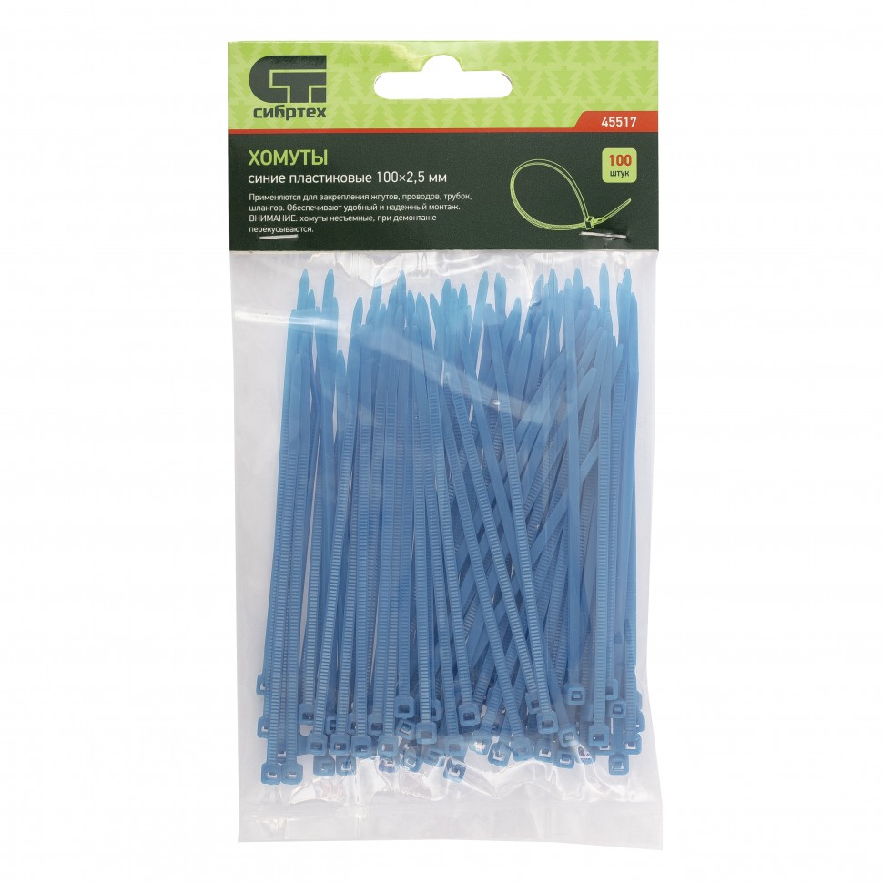 Хомуты, 100 х 2,5 мм, пластиковые, синие, 100 шт. Сибртех