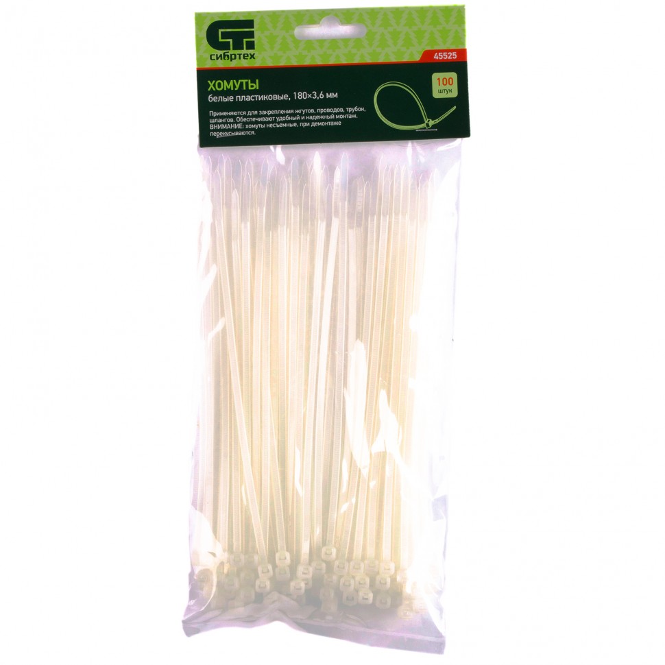 Хомуты, 180 х 3,6 мм, пластиковые, белые, 100 шт. Сибртех