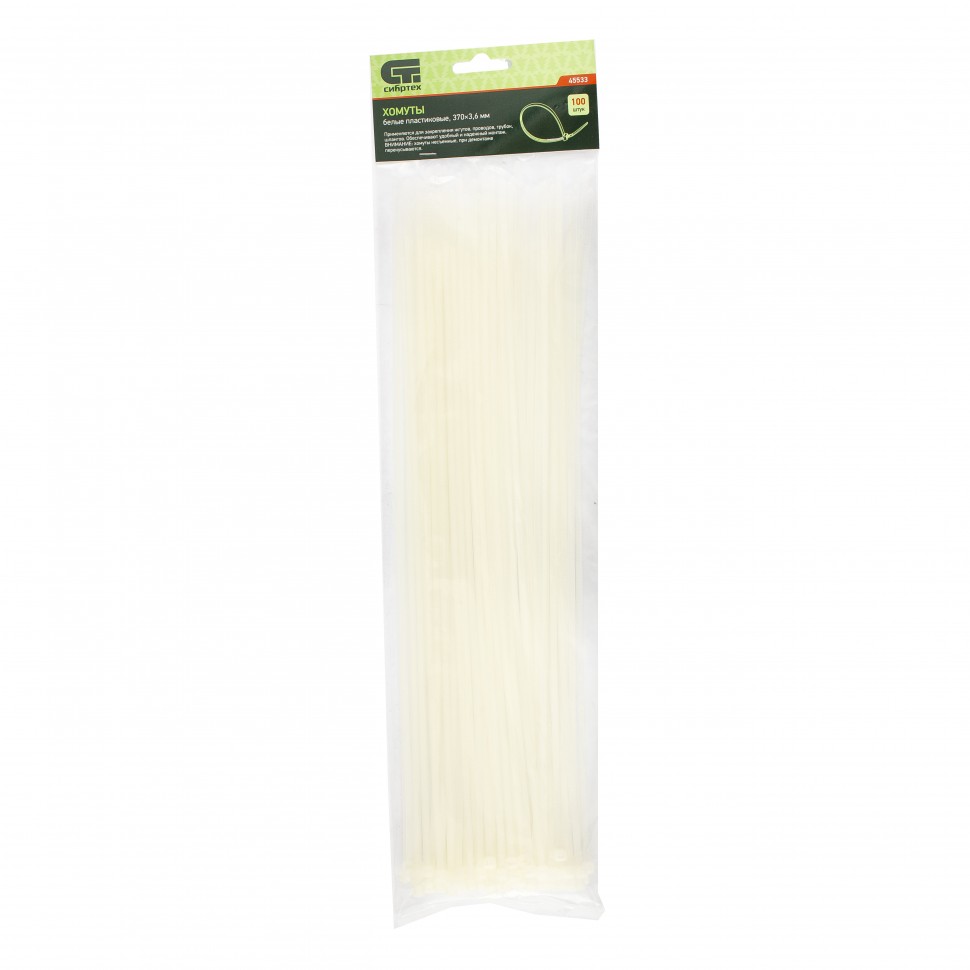 Хомуты, 370 х 3,6 мм, пластиковые, белые, 100 шт. Сибртех