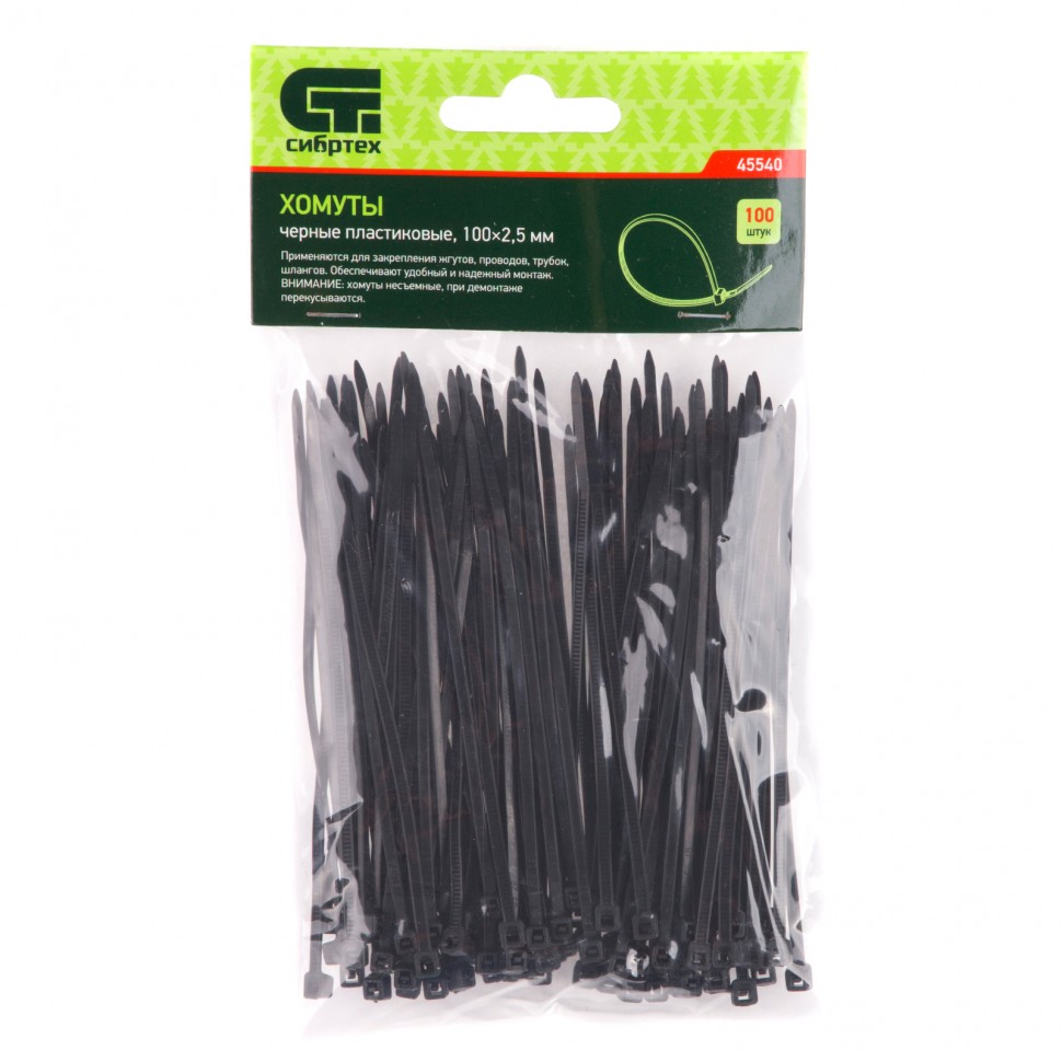 Хомуты, 100 х 2,5 мм, пластиковые, черные, 100 шт. Сибртех