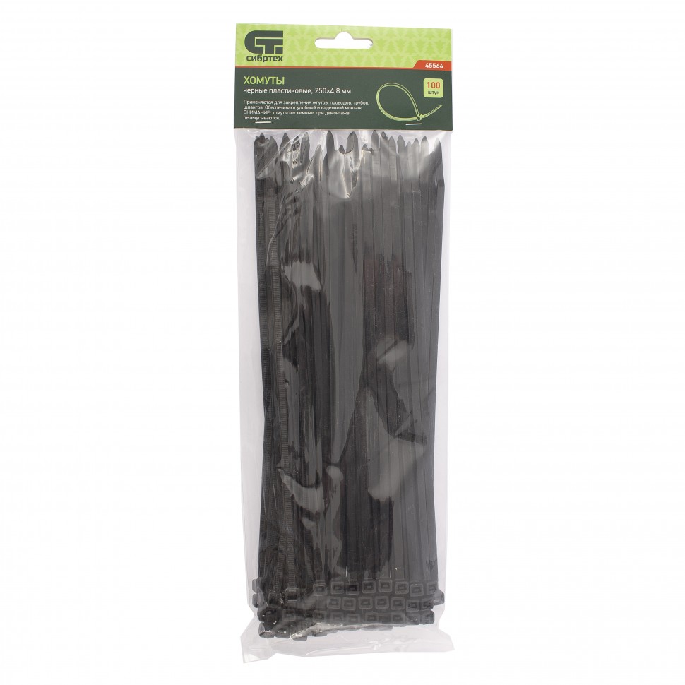 Хомуты, 250 х 4,8 мм, пластиковые, черные, 100 шт. Сибртех