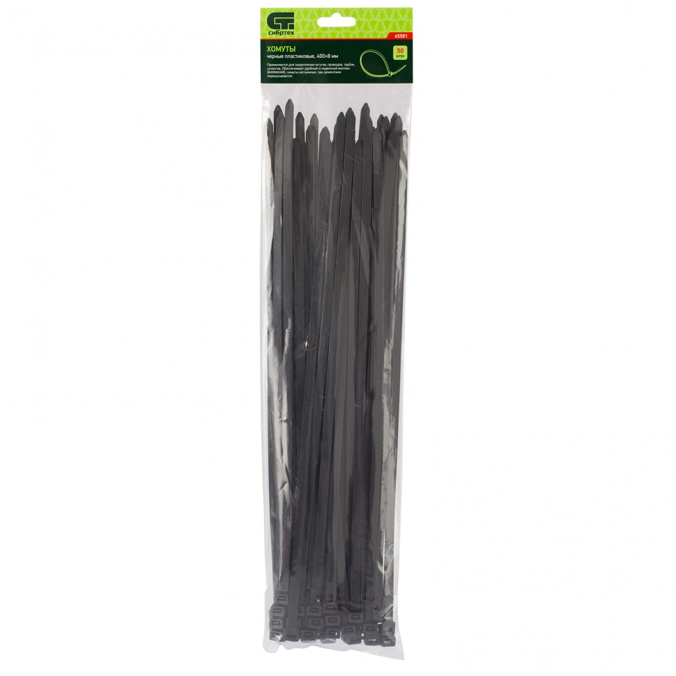 Хомуты, 400 х 8 мм, пластиковые, черные, 50 шт. Сибртех