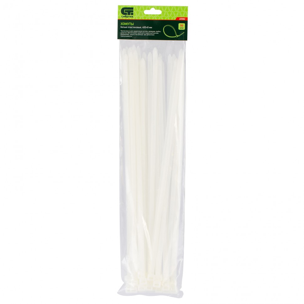 Хомуты, 400 х 8 мм, пластиковые, белые, 50 шт. Сибртех