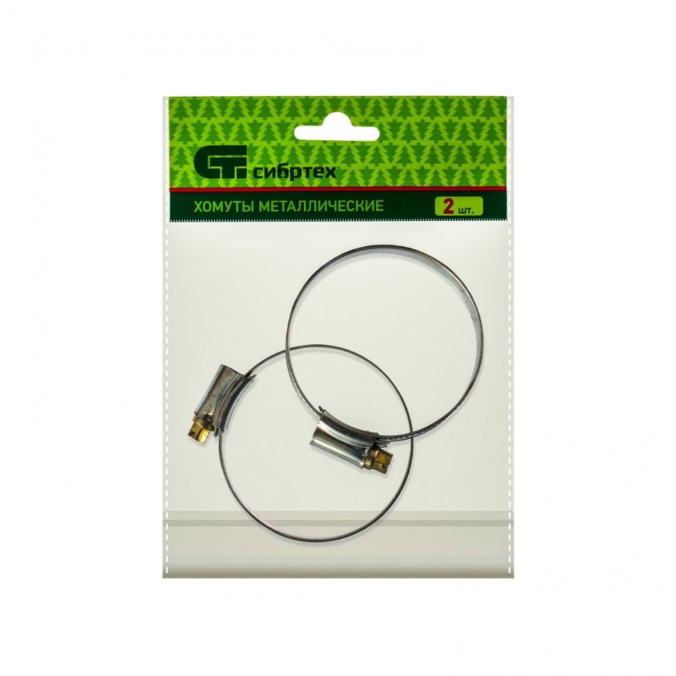 Хомуты металлические, червячные 44-64 мм, ширина 12 мм, англ. тип, W1, 2 шт. Сибртех