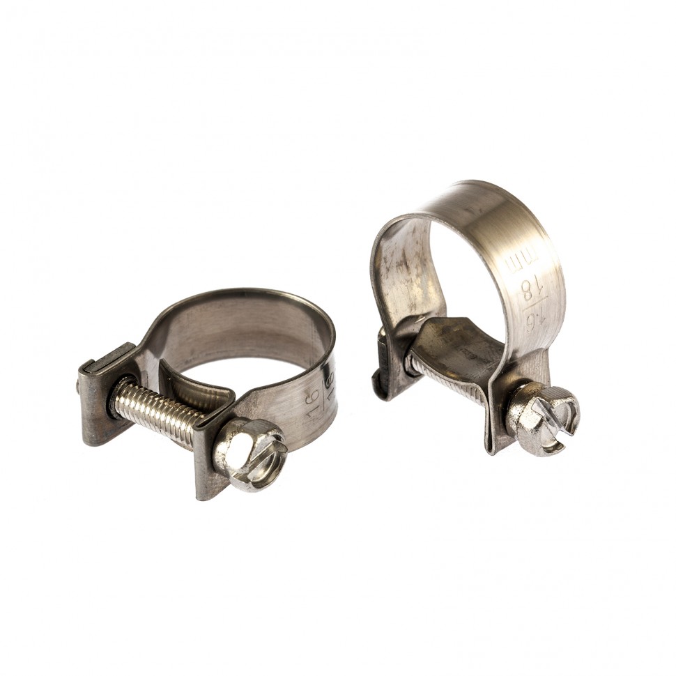 Хомуты металлические, MINI 16-18 мм, ширина 9 мм, винтовые, W4, 2 шт. Сибртех