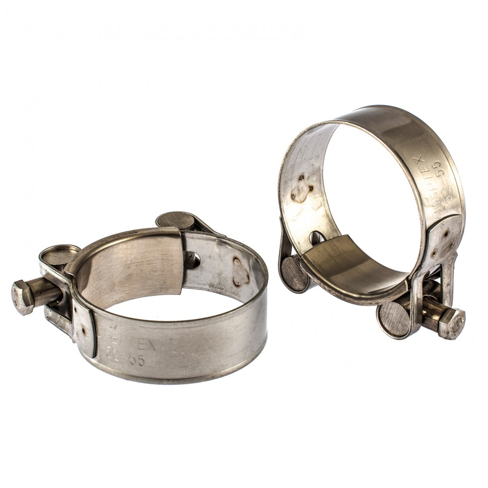 Хомуты металлические, силовые 52-55 мм, ширина 22 мм, шарнирные, W4, 2 шт. Сибртех