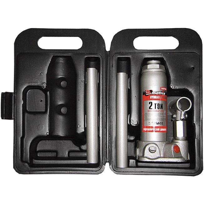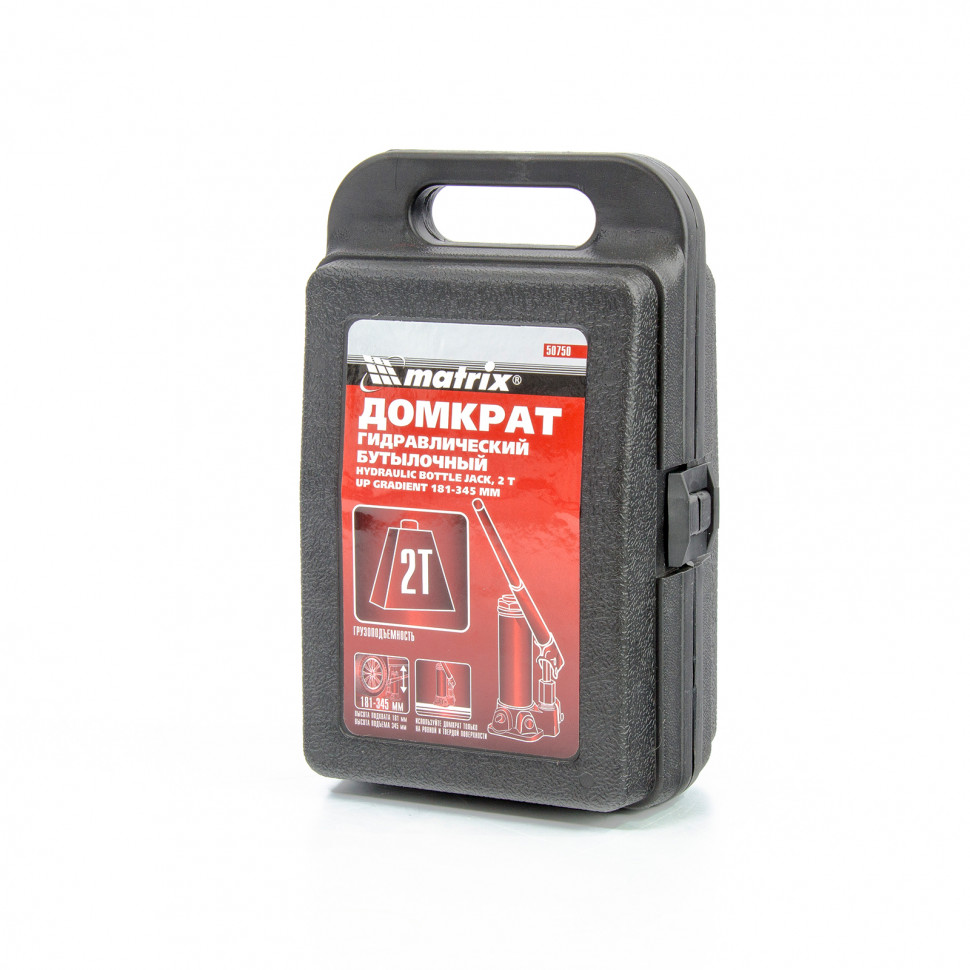 Домкрат гидравлический бутылочный, 2 т, h подъема 181–345 мм, в пласт. кейсе Matrix