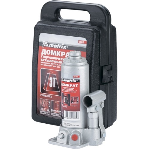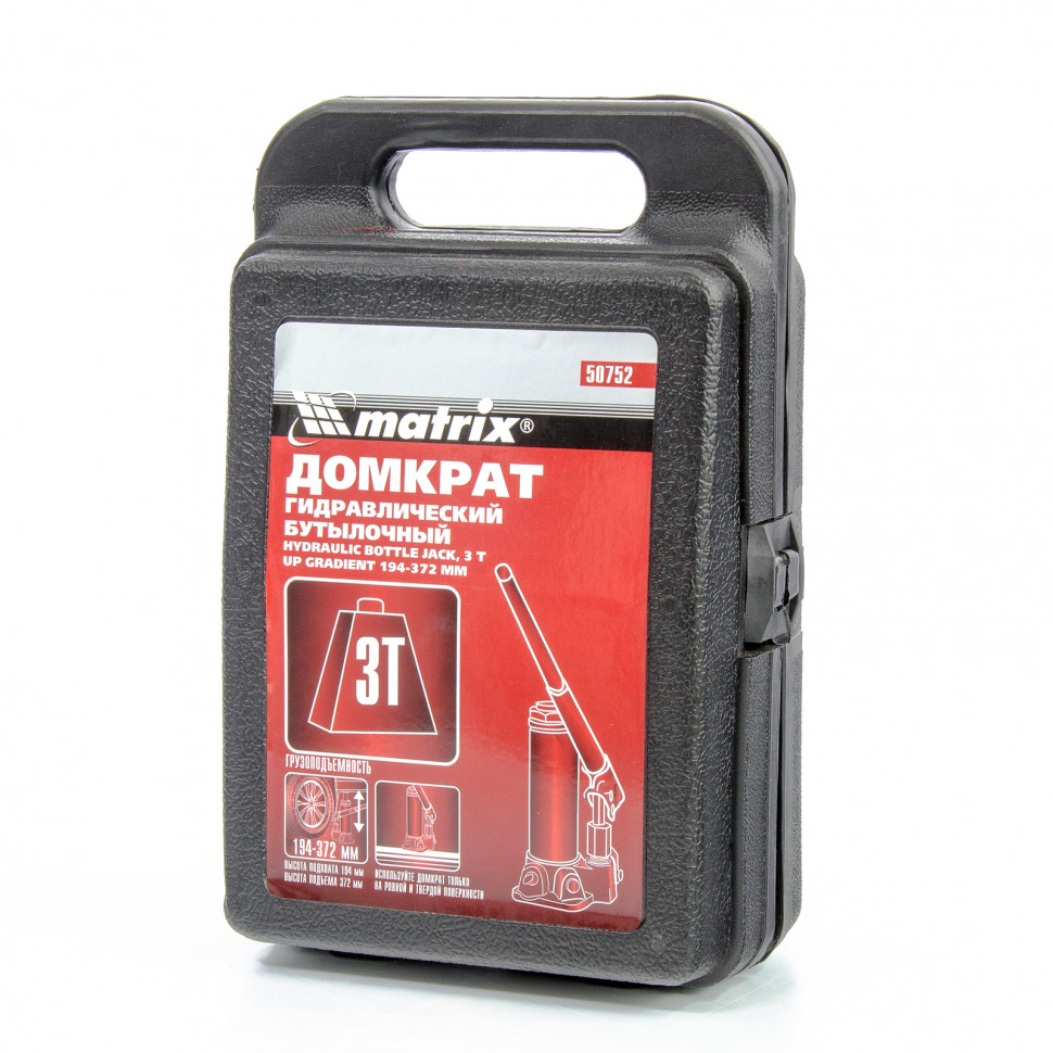 Домкрат гидравлический бутылочный, 3 т, h подъема 194–372 мм, в пласт. кейсе Matrix