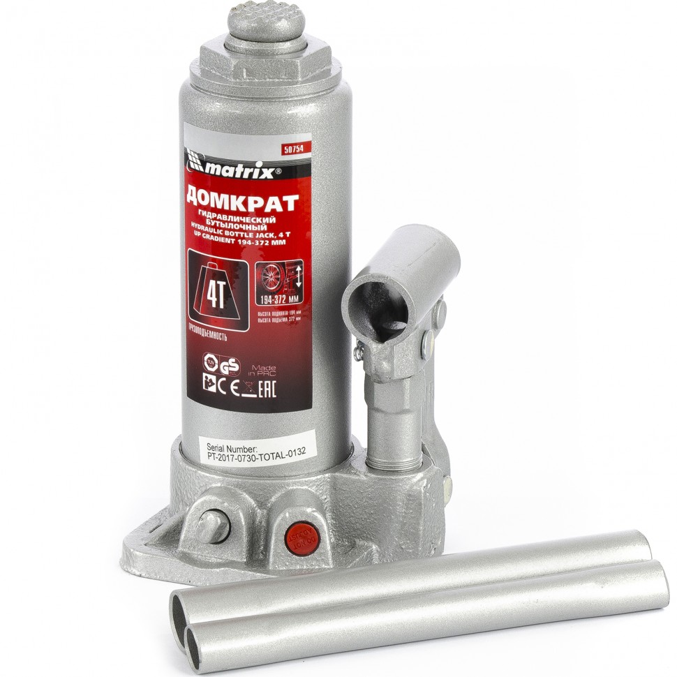 Гидравлический домкрат MATRIX MASTER с клапаном безопасности предназначен для подъема груза массой до 4 тонн.