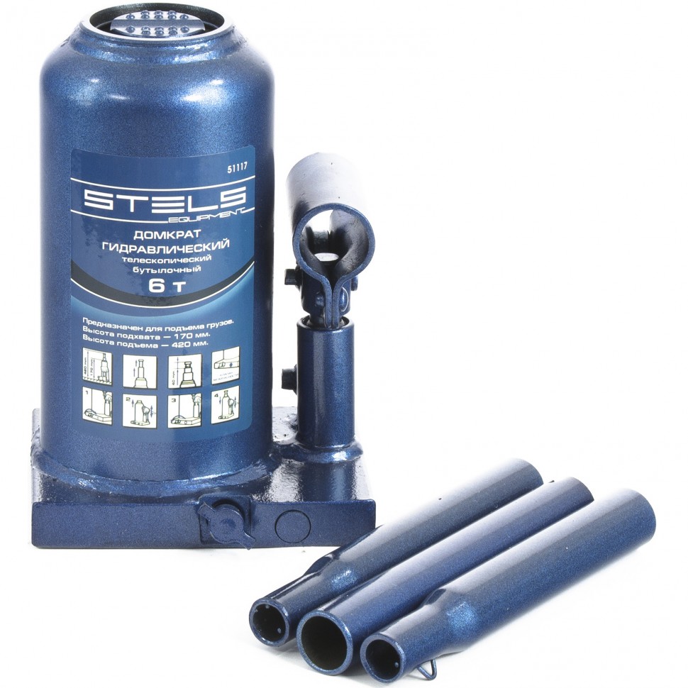 Домкрат гидравлический бутылочный телескопический, 6 т, h подъема 170–420 мм Stels