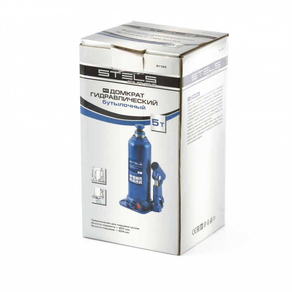 Домкрат гидравлический бутылочный, 5 т, h подъема 207-404 мм Stels