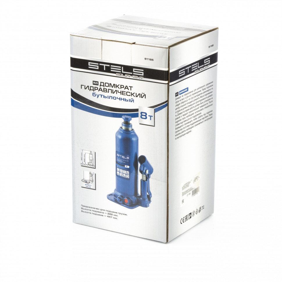 Домкрат гидравлический бутылочный, 8 т, h подъема 222-447 мм Stels