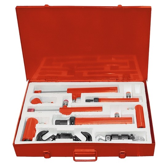 Набор гидроцилиндров, предназначенных для правки кузовов автомобилей. В комплект входит: 2 стяжных цилиндра на 5 т и 2 т, 2 стандартных цилиндра на 10 т и 4 т, а также 3 портативных цилиндра на 10 т, 4 т, 2 длиной 118 мм, 40 мм и 126 мм.