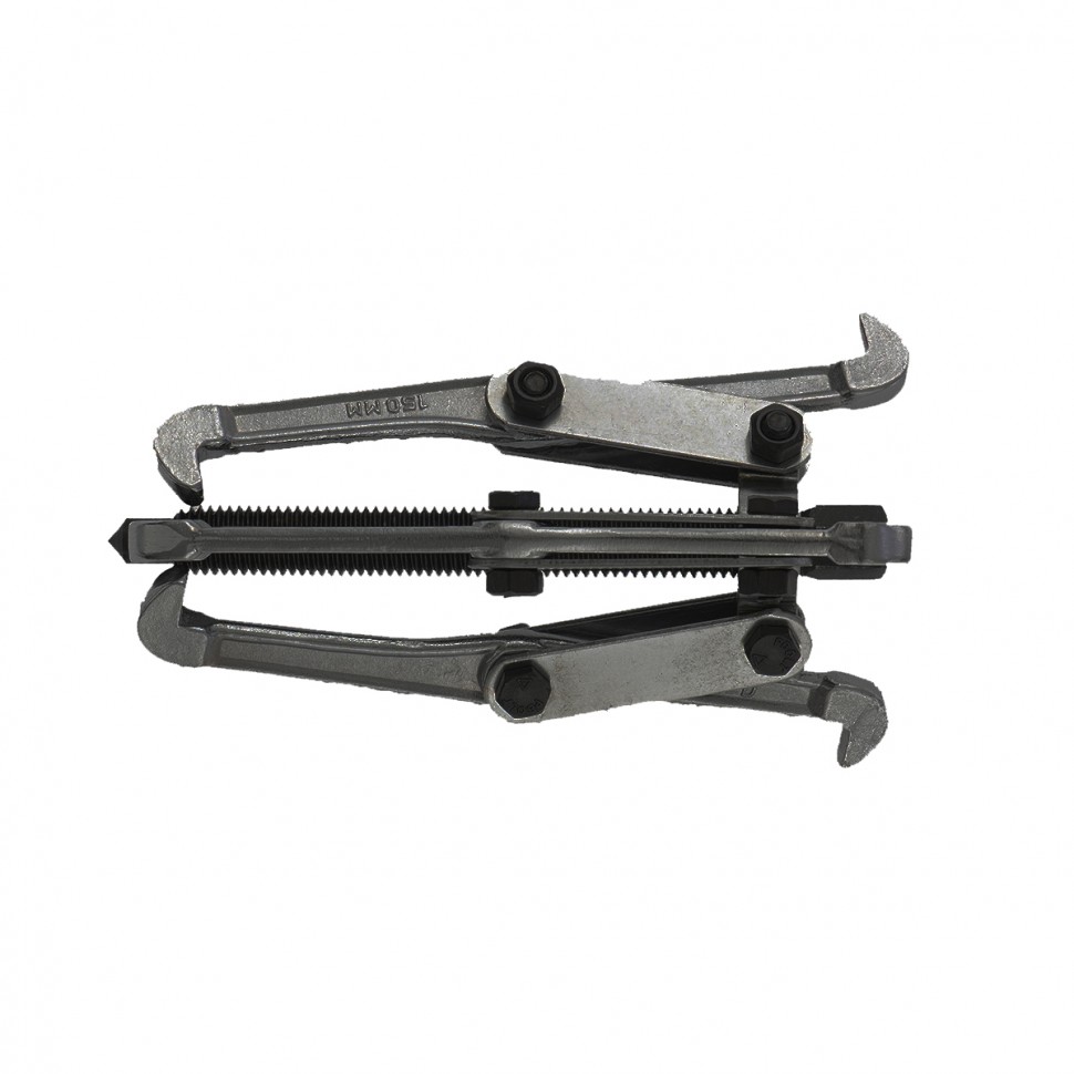 Упоры на обоих концах захватов съемника имеют одинаковую ширину, а вылет захватов при их перестановке меняется приблизительно в полтора раза.
