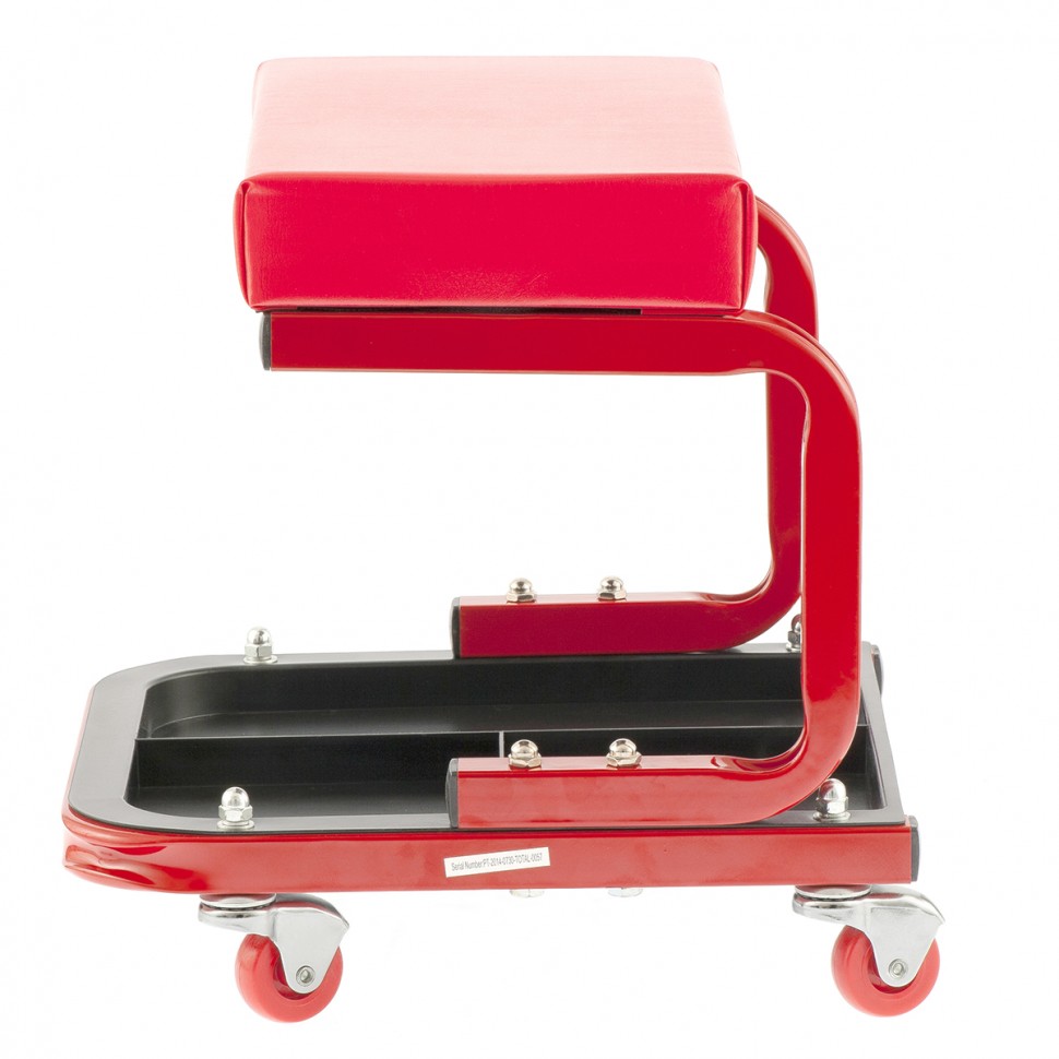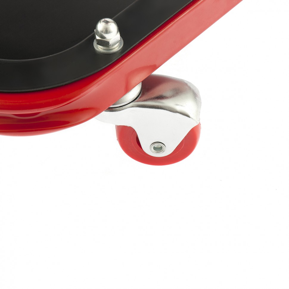 Конструкция имеет четыре колеса с углом поворота на 360 градусов, а также поддон для инструмента и мелких деталей.