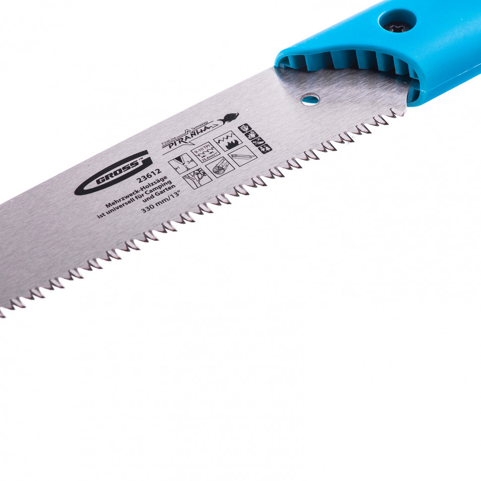 Пила по дер. PIRANHA,универс. для кэмп. и сада,330 мм,9-10TPI,зуб3D,кал.зуб,2-ком.рук.,пенал Gross