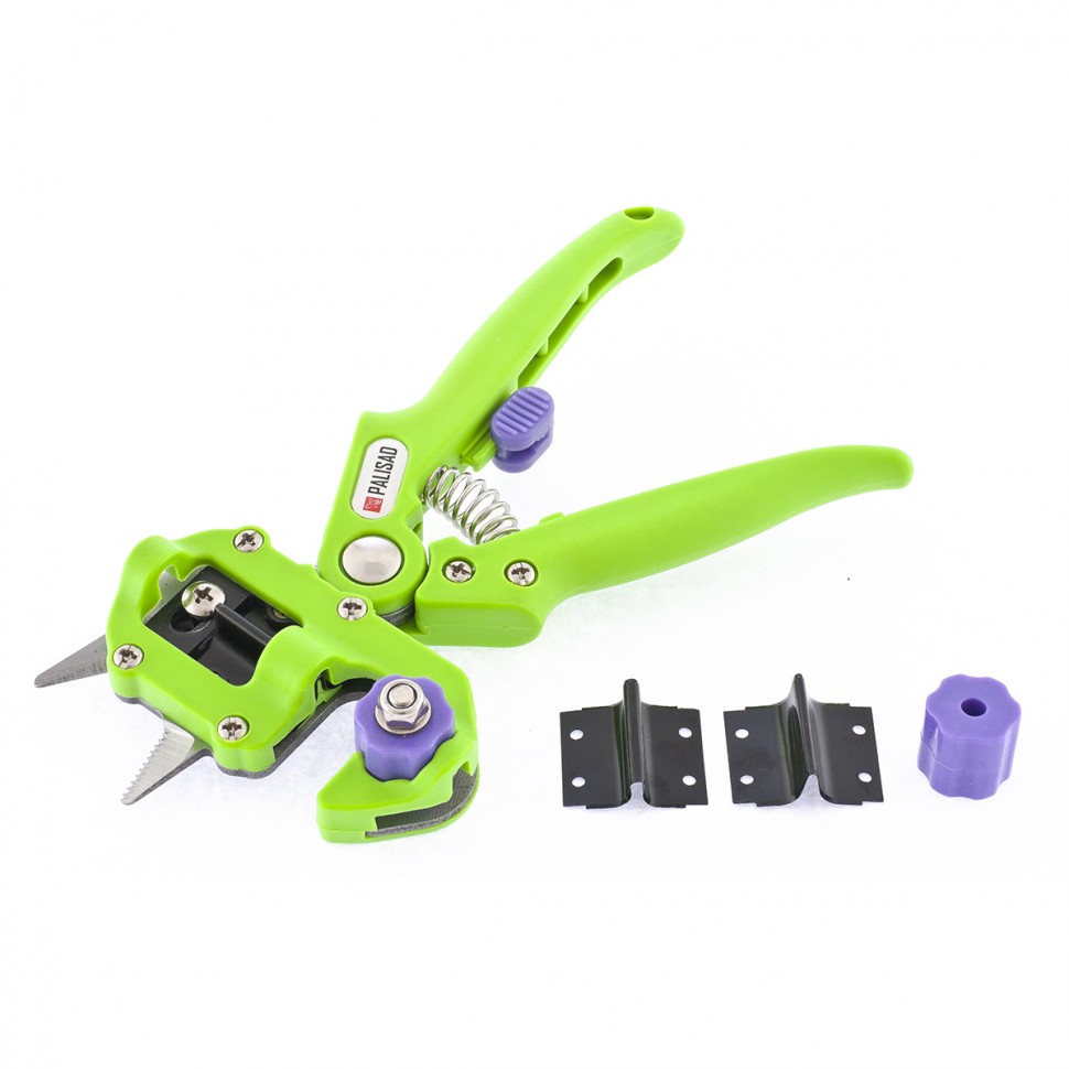 Конструкция лезвий прививочного секатора разработана таким образом, что фигурные вырезы на подвое и привое безо всякой дополнительной подгонки идеально совпадают друг с другом.