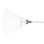 Грабли веерные регулируемые, 15 круглых, сплющенных на концах зубьев, охват рабочей части от 200 до 440 мм.