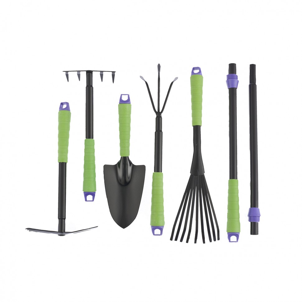 Набор садового инструмента с двумя съемными удлиняющими ручками, предназначен для работ по уходу за растениями, цветами, небольшим кустарником.