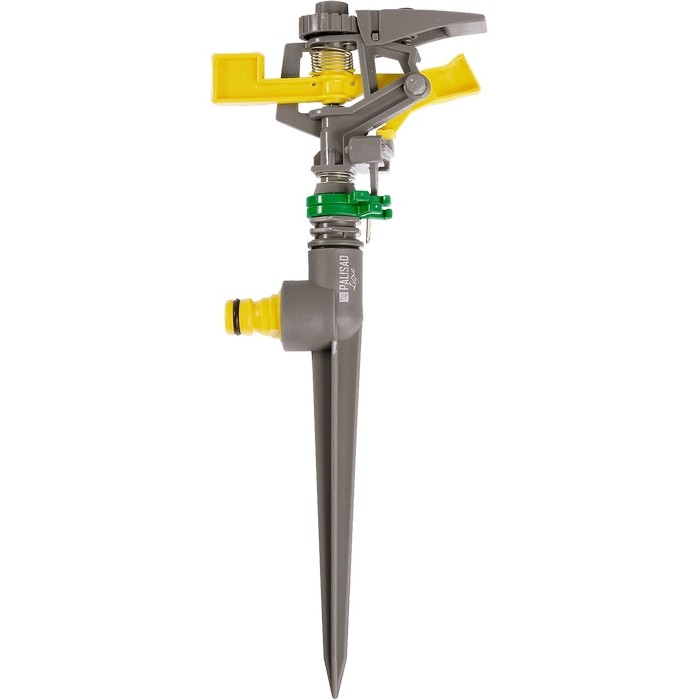 Разбрызгиватель импульсный со штуцерной посадкой и пикой для закрепления в почве. Распыляющая головка имеет механизм регулировки угла горизонтального распыления напора воды на угол от 30 до 360 градусов, обеспечивающий секторный полив площади до 250 кв. м. Дополнительно регулируется дальность разбрызгивания до 12 м. Разбрызгиватель предназначен для стационарного полива на дачных участках, в садах, парках и скверах. Совместим со всеми элементами системы полива PALISAD и PALISAD Luxe.Изготовлен из прочного АБС-пластика. Штырь-пика надежно фиксирует разбрызгиватель в почве.