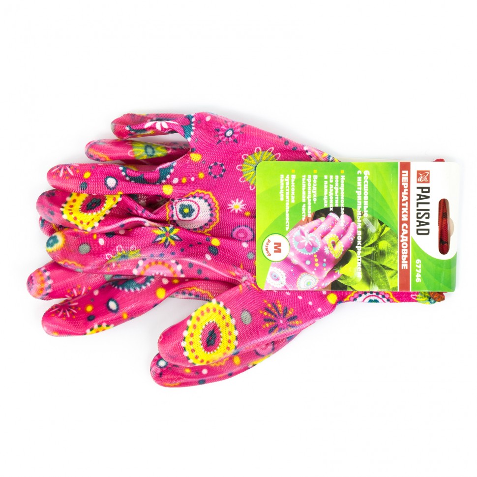 Перчатки садовые из полиэстера с нитрильным обливом, красные, M Palisad