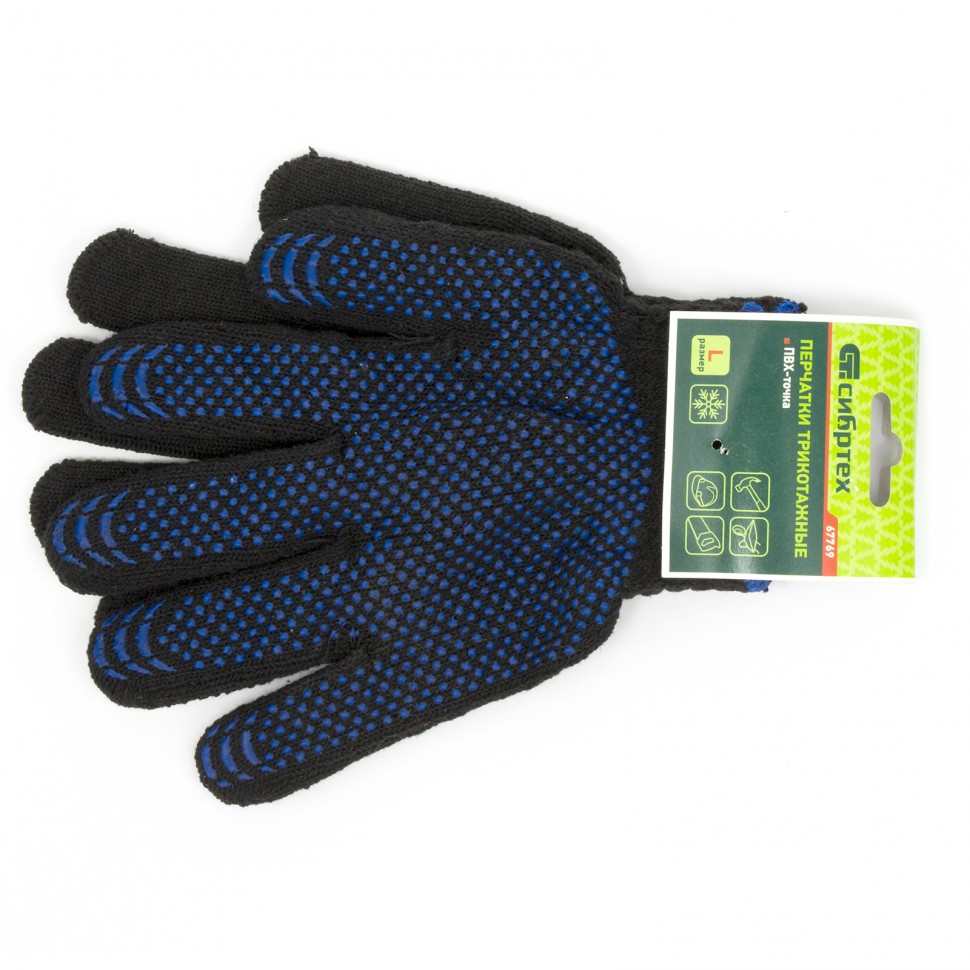 Перчатки трикотажные хлопкоэфирные плюшевые, ПВХ "точка", 7 кл., 55 гр., Россия Сибртех
