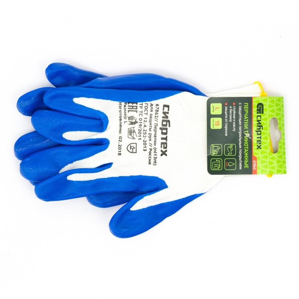 Нитрильное покрытие защищает руки от воздействия бензина и масла, а также от влаги и загрязнений, обеспечивает надежный захват инструмента и предотвращает появление мозолей.