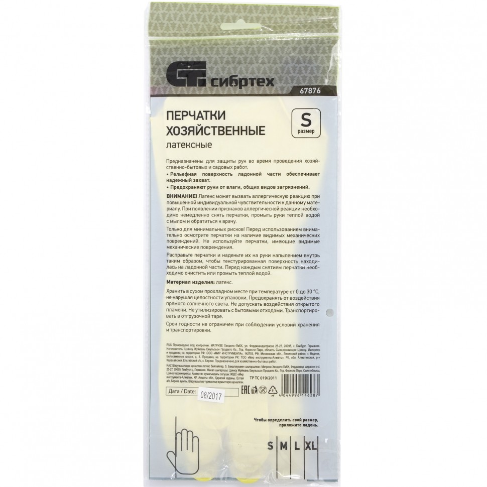 Перчатки хозяйственные латексные, M Сибртех
