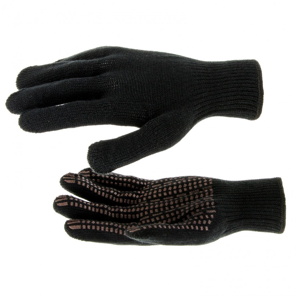Перчатки трикотажные, акрил, ПВХ гель "Протектор", чёрные, оверлок, Россия Сибртех