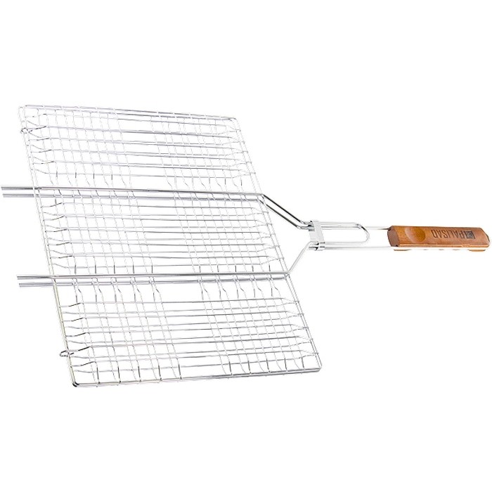 Предназначены для запекания мяса, птицы, рыбы, овощей, сосисок, колбасок, шпикачек над углями на открытом воздухе. Изготовлены из высококачественной жаропрочной стали. Хромированные.Увеличенная толщина прутьев позволяет значительно продлить срок службы изделия. Рукоятка изготовлена из дерева, покрыта лаком. Она не нагревается и имеет эргономичную форму, что обеспечивает удобство и безопасность приготовления пищи. Зазоры между решетками позволяют не передавливать запекаемые продукты, сохраняя их сочность.Увеличенные опорные стержни позволяют удобно расположить решетку на мангал и задействовать всю поверхность приготовления пищи.