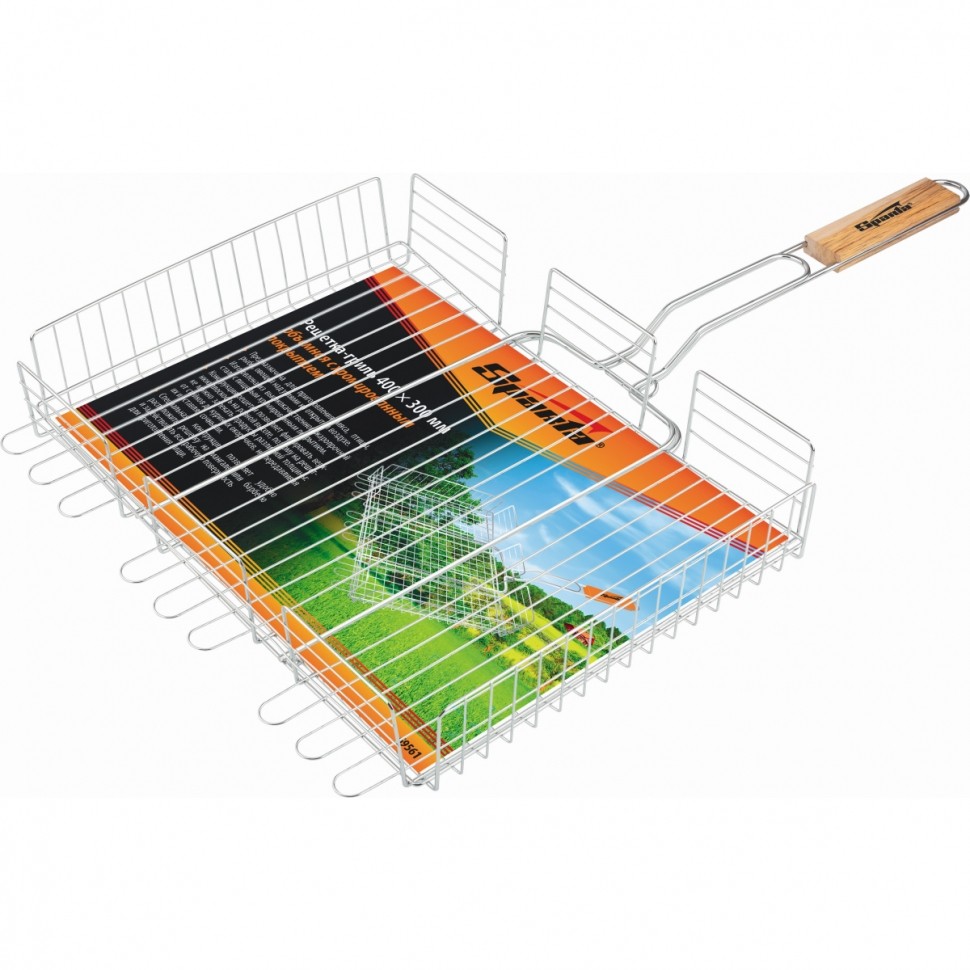Решетка-гриль предназначена для приготовления мяса, птицы, рыбы, овощей на открытом воздухе. Изготовлена из высококачественной жаропрочной стали с пищевым хромированным покрытием. Конструкция решетки позволяет фиксировать верхнюю плоскость на разной высоте, поэтому на решетке можно запекать продукты различной толщины: от стейков до куриных окорочков. Специальная конструкция позволяет удобно расположить решетку на мангале или барбекю и задействовать для приготовления пищи всю рабочую поверхность.