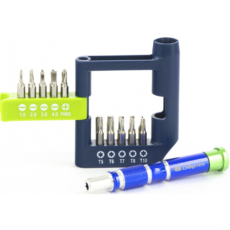 Отвёртка для точных работ с набором бит, 21 шт., CrV Сибртех