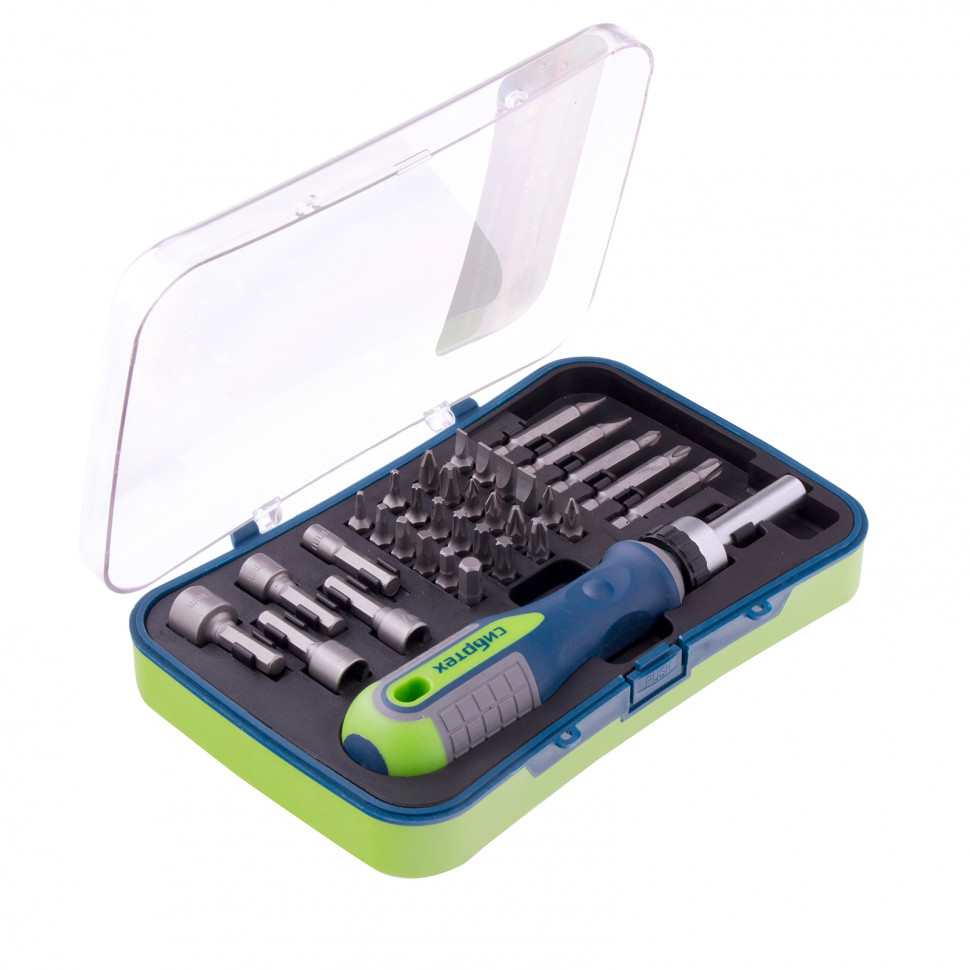 Отвертка реверсивная с набором бит и торцевыми головками, 35 шт., CrV Сибртех
