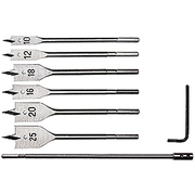 Перовые сверла изготовлены из углеродистой стали. Твердость режущих кромок 45–54 HRC. Предназначены для сверления отверстий в древесине. Комплектация: 10-12-14-16-18-20-25 мм. Набор 70406 дополнительно комплектуется удлинителем 300 мм. Хвостовики имеют шестигранную форму, что предотвращает поворот сверла. Центрирующее острие исключает необходимость в предварительном засверливании.