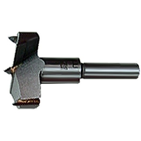 Сверло изготовлено из углеродистой стали и оснащено твердосплавными пластинами для увеличения стойкости и производительности. Предназначено для точного высверливания глухих (несквозных) отверстий большого диаметра на небольшую глубину. Используется при установке мебельных петель в дереве, ламинате и ДСП.