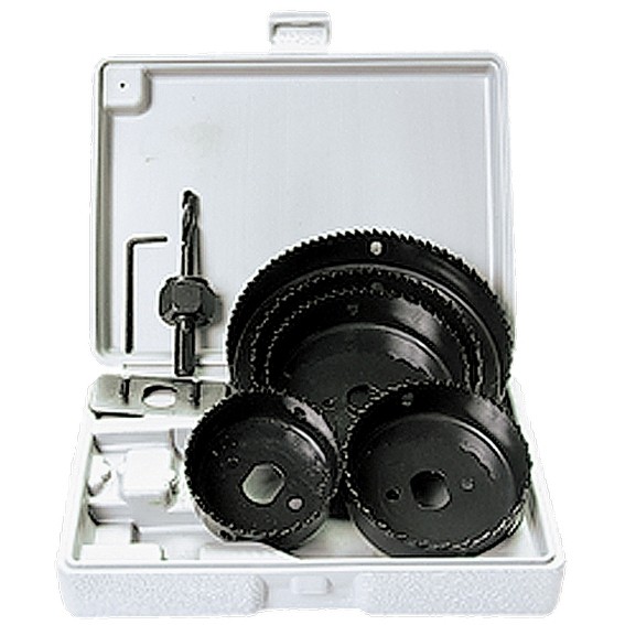 Пилы кольцевые наборные по дереву предназначены для использования в качестве насадок ручной или электрической дрели. Позволяют без специальной подготовки вырезать отверстия диаметром от 26 до 95 мм в дереве, ДСП, ДВП. При хранении все пильные полотна вставлены в пазы, перед работой устанавливают пилу нужного диаметра. В центре держателя установлено центрирующее сверло. Наборы включают в себя пилы следующих размеров: арт. 70450 – 26, 32, 38, 44, 50, 56, 62 мм, арт. 70452 – 26, 32, 38, 44, 50, 56, 62 мм, арт. 70470 – 60, 67, 74, 81, 95 мм.