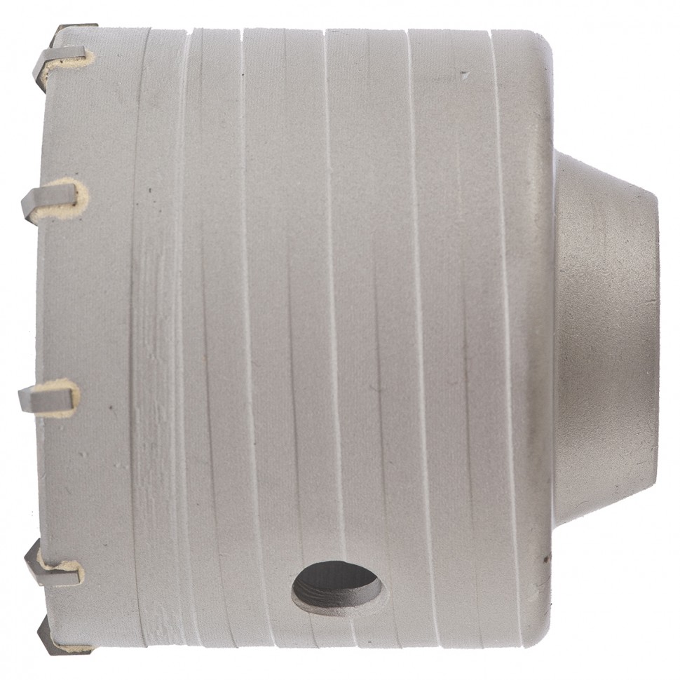 На внешней стороне коронки нарезана спиральная канавка для улучшения вывода продуктов сверления и снижения нагрузки на перфоратор.