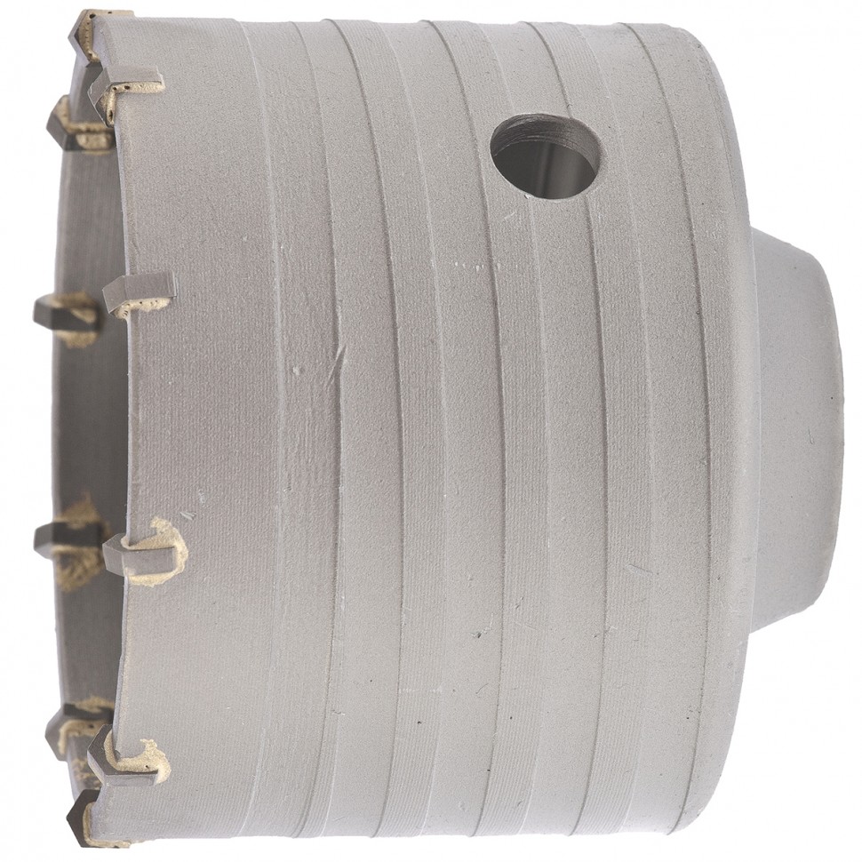 На внешней стороне коронки нарезана спиральная канавка для улучшения вывода продуктов сверления и снижения нагрузки на перфоратор.