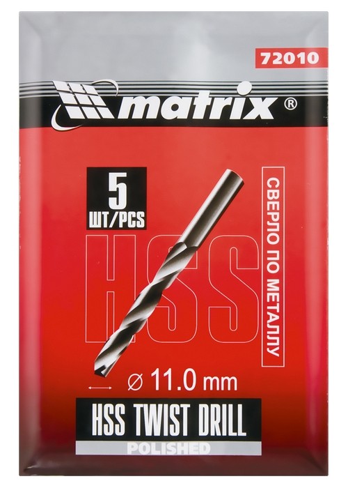 Сверло по металлу, 11 мм, полированное, HSS, 5 шт. цилиндрический хвостовик Matrix