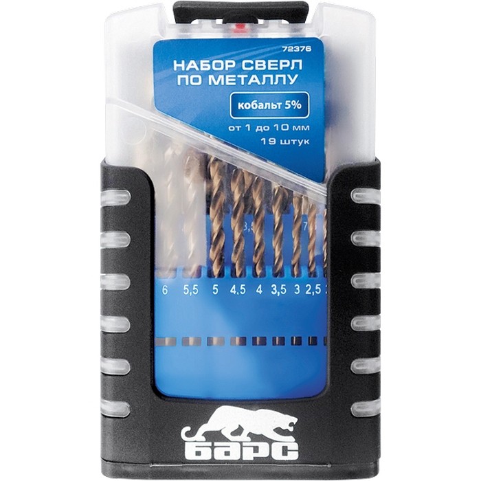 Набор сверл по металлу, 1-10 мм (через 0,5 мм), 19 шт., Р6М5, вышлиф, цилиндр. хвост., бокс Барс