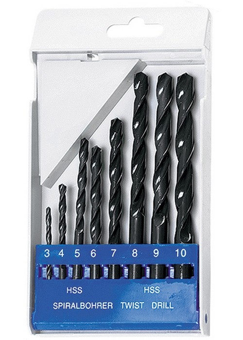 В набор входят сверла 3–4–5–6–7–8–9–10 мм. Сверла по металлу изготовлены из быстрорежущей стали (HSS). Упакованы в пластиковый пенал.
