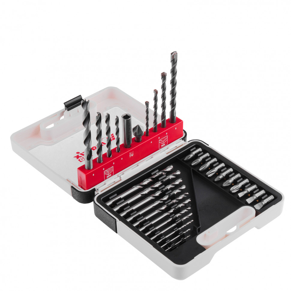 Набор сверл комб., мет.1-6мм,бетон 4-8мм,дер.4-8 мм,биты 10шт,адап., зенковка, 31пр., PRO Matrix