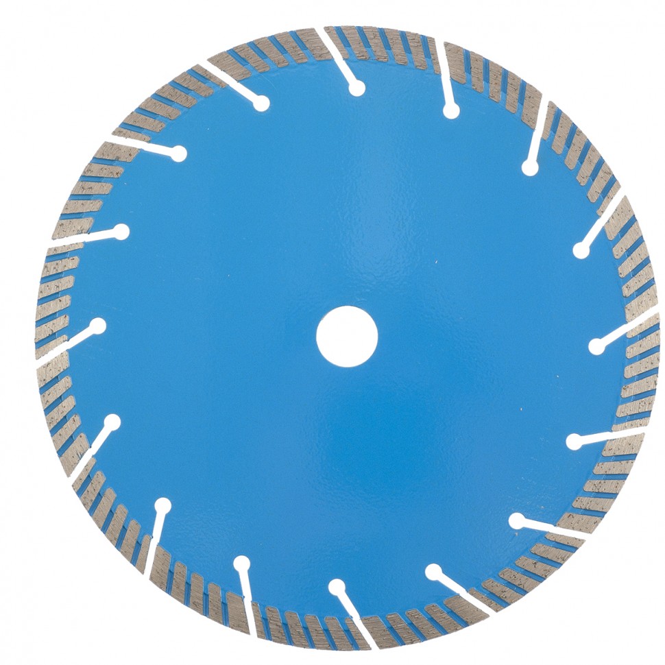 Диск предназначен для сухого резания, армированного бетона различных марок, кирпича, природного камня.На основание из стали 65Г, методом горячего прессования, закреплены режущие турбо-сегменты , состоящие из порошков различных металлов и высококачественного синтетического алмаза.Сегментная форма, обеспечивает производительное резение и эффективный вынос шлама из зоны резания.