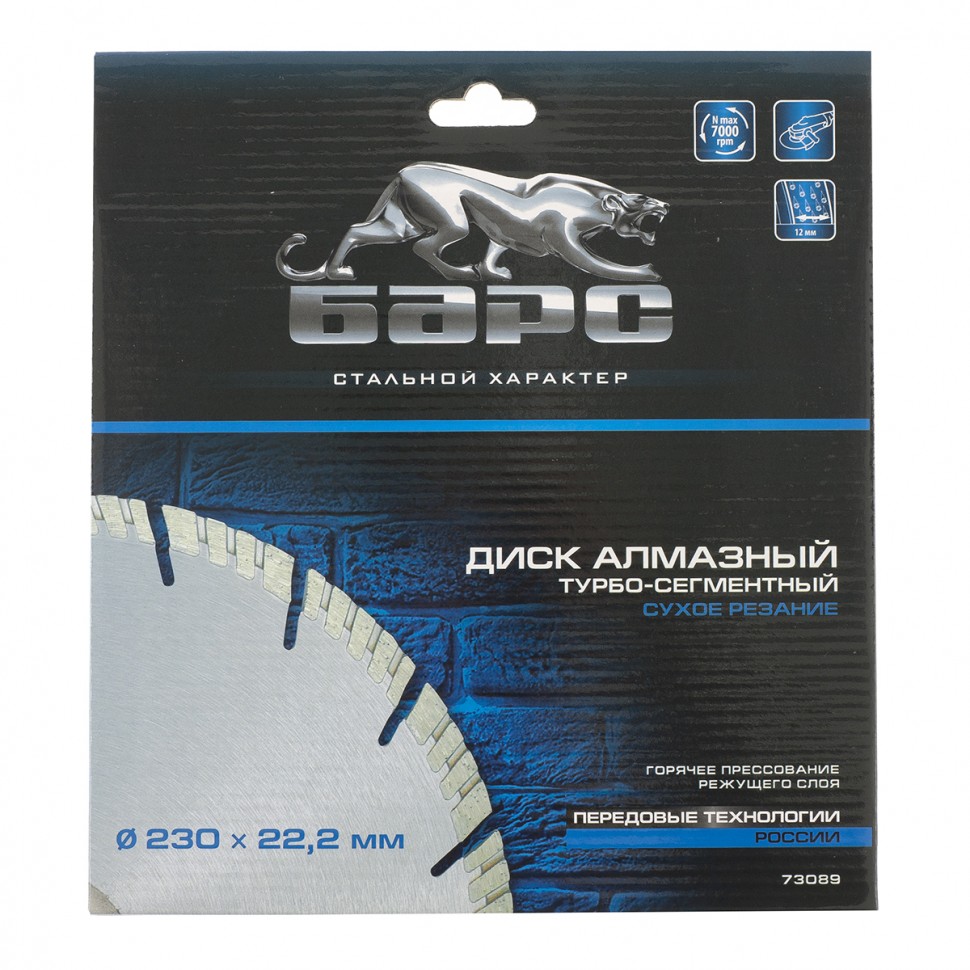 Диск алмазный Турбо-сегментный ф230х22,2 мм, сухое резание Барс