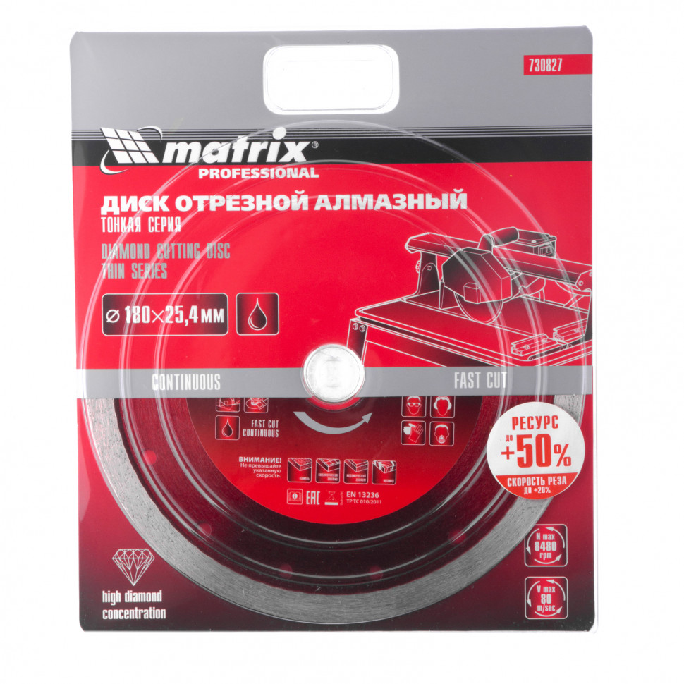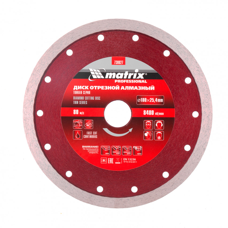 Диск алмазный сплошной, тонкий, 180 х 25,4 мм, мокрое резание Matrix
