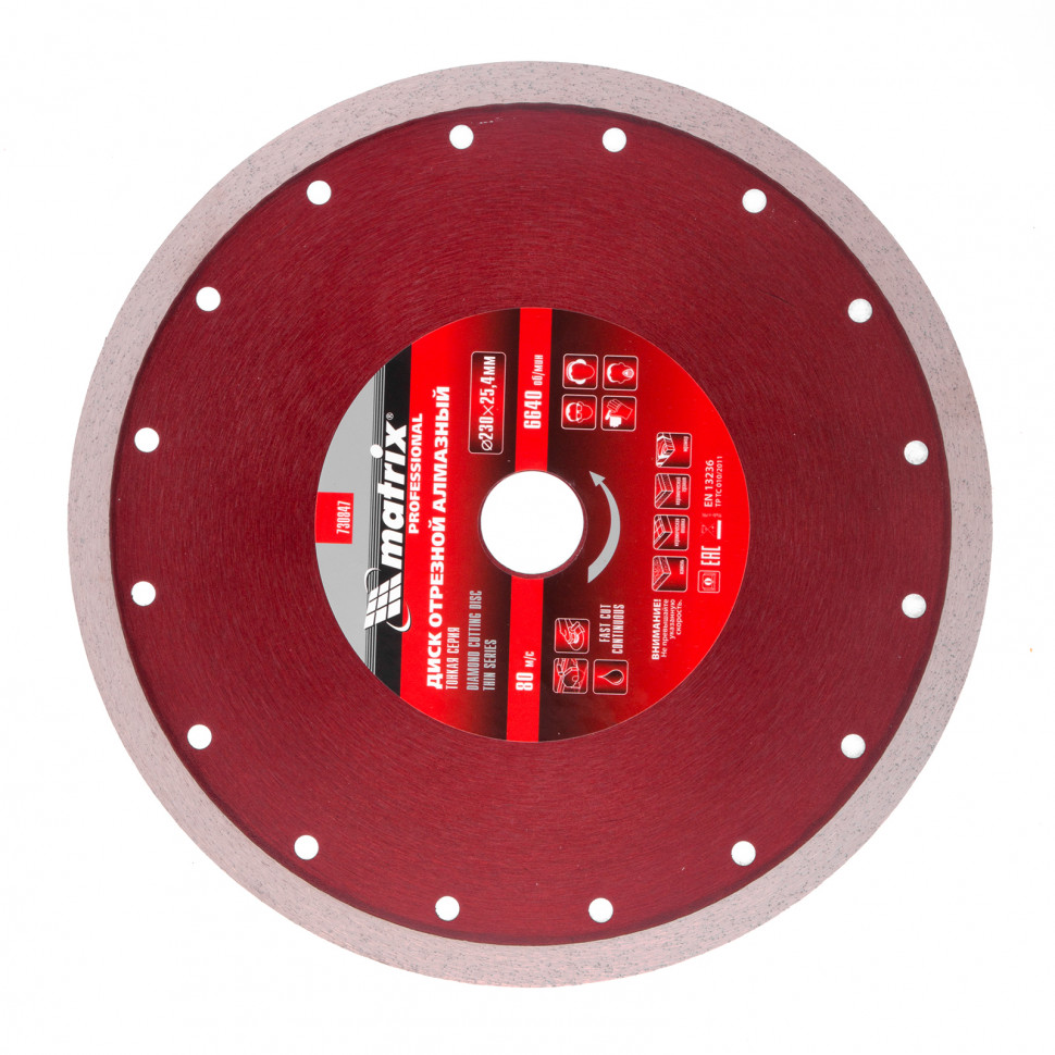 Диск алмазный сплошной, тонкий, 230 х 25,4 мм, мокрое резание Matrix