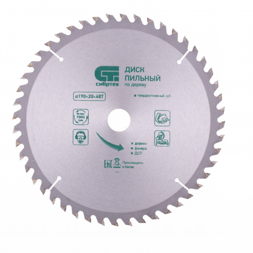 Пильный диск по дереву, 190 х 20мм, 48 зубьев, кольцо 16/20 Сибртех