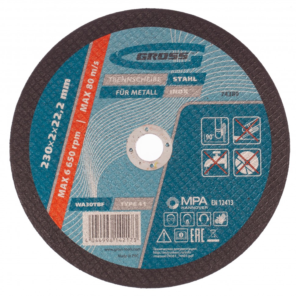 Круг отрезной по металлу, 230 х 2,0 х 22,2 мм, WA36TBF Gross