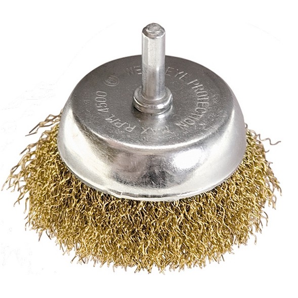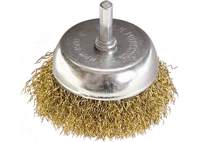 Щетка для дрели, 75 мм, "чашка" со шпилькой, латунированная витая проволока Matrix